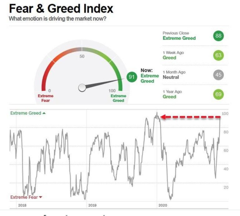 «Мы полагаем, что идея об отсутствии альтернатив покупке акций на широкой основе привела к перерегреву», — сказал Тобиас Левкович, главный стратег банка по акциям в США. «Текущие эйфорические показатели сигнализируют о 100% вероятности потерять деньги в ближайшие 12 месяцев, если мы изучим исторические модели — действительно, мы видели такие уровни еще в начале сентября, прямо перед распродажей акций».